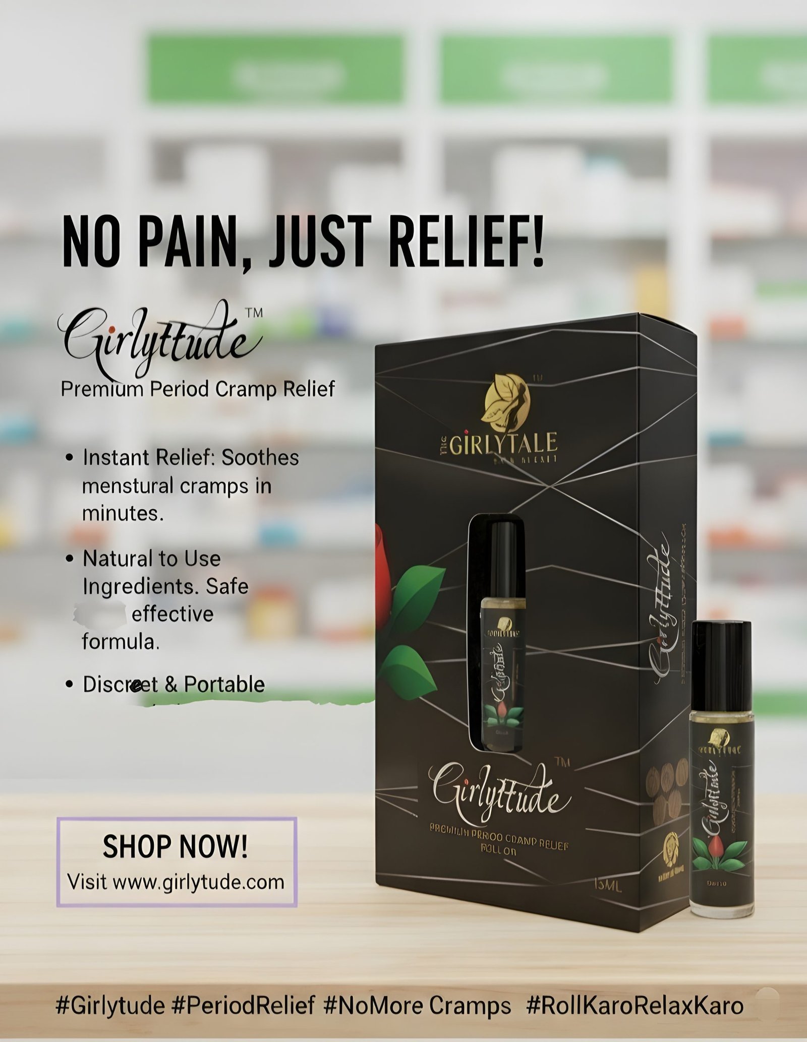 *Girlyttude Period Cramp Relief Roll-On | 100% Herbal Relief in India