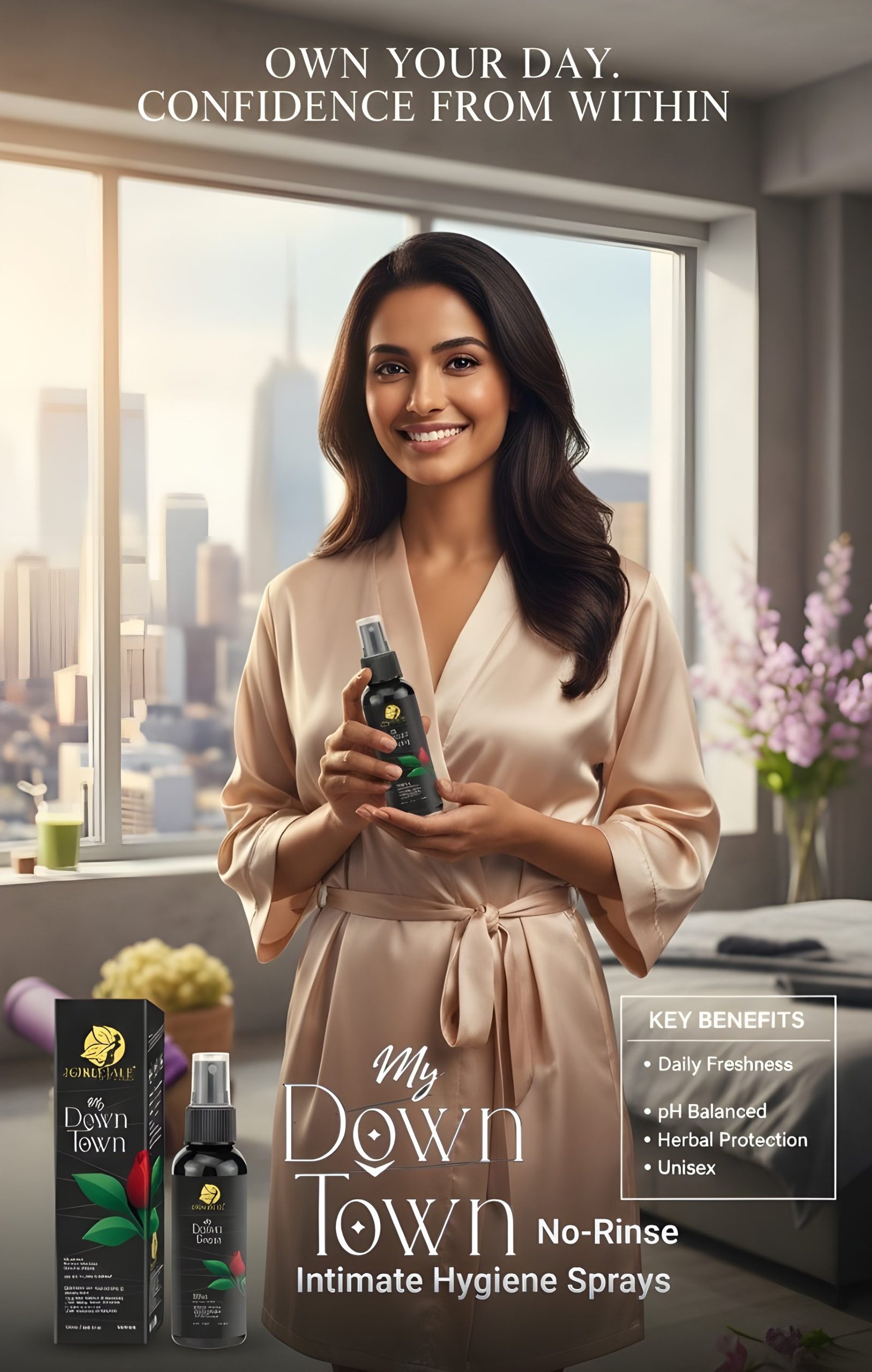 My Down Town Intimate Hygiene Spray is specially designed with a Contactless delivery system just spray no rinse formula to maintain daily intimate freshness, hygiene, and comfort without disturbing the body’s natural balance. Formulated with a pH 3.5 balanced formula, it helps support intimate health while preventing unpleasant odour and irritation.